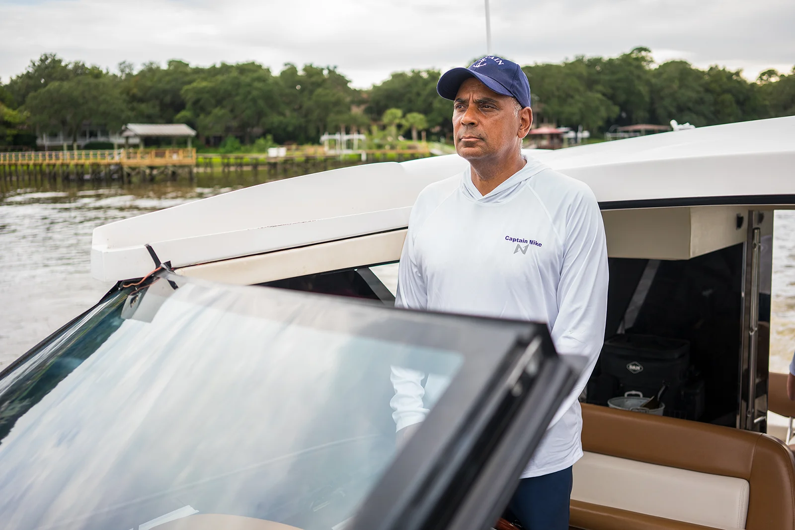 Meet Captain Mike, the fun-loving and experienced captain at the helm of the Chocolate Milk Boat Charter. As an Air Force veteran who served on Air Force One for many years, Mike is dedicated to safety and ensuring that your party has an unforgettable day or evening on the water. His passion for boating and the safety of his passengers is only matched by his commitment to helping our troubled veterans get back on their feet, through volunteering with the Charleston Veterans Drug Treatment Court. With Mike as your captain, you can sit back, relax, and enjoy the ultimate yachting experience in Charleston, SC.
